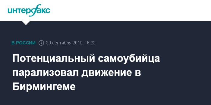 Лондон. 30 сентября. INTERFAX.RU - Движение автотранспорта в Бирмингеме практически остановилось из-за мужчины, угрожающего кинуться с моста, сообщает в четверг интернет-сайт британской газеты Guardian.