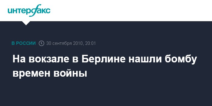 Берлин. 30 сентября. INTERFAX.RU - На берлинском вокзале "Осткройц" в ходе ремонтных работ обнаружена бомба времен Второй мировой войны, сообщает в четверг газета Berliner Morgenpost.
