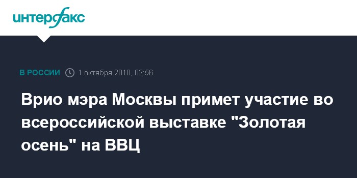Врио мэра Москвы примет участие во всероссийской выставке "Золотая осень" на ВВЦ