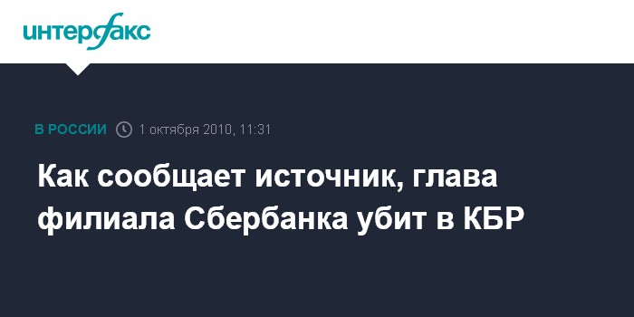 Как сообщает источник, глава филиала Сбербанка убит в КБР