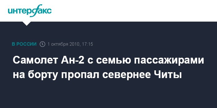 Москва. 1 октября. INTERFAX.RU - Ространснадзор сообщает о воздушном судне Ан-2, не прибывшем в пункт назначения на северо-востоке Бурятии.
