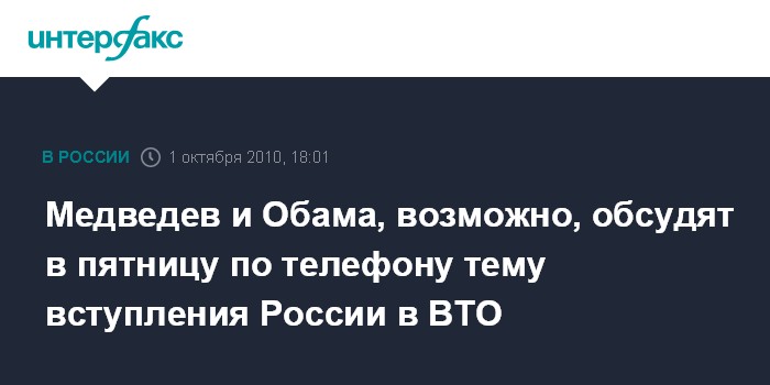 Медведев и Обама, возможно, обсудят в пятницу по телефону тему вступления России в ВТО
