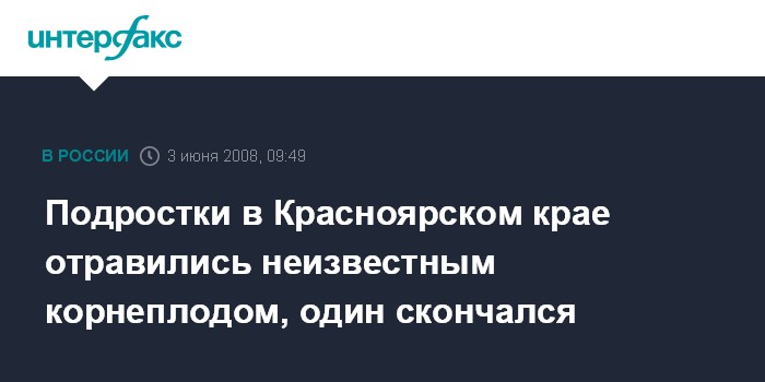 Красноярск. 3 июня. INTERFAX.RU - В Большеулуйском районе Красноярского края госпитализированы трое подросков, которые съели неизвестные корнеплоды. Один юноша скончался.