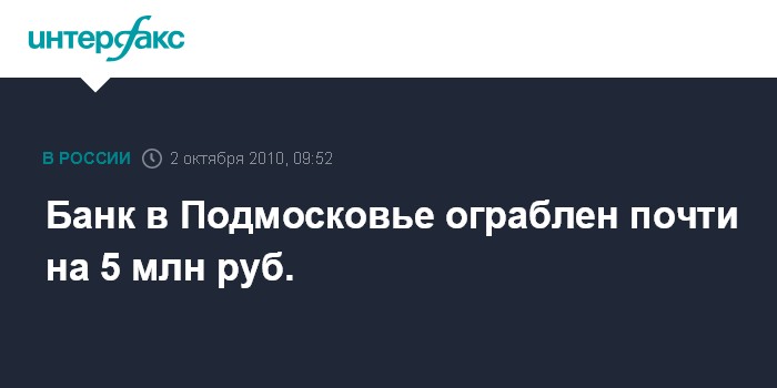 Банк в Подмосковье ограблен почти на 5 млн руб.