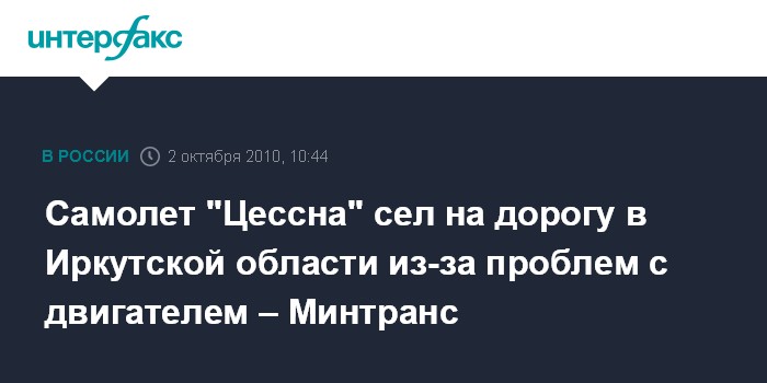 Самолет "Цессна" сел на дорогу в Иркутской области из-за проблем с двигателем – Минтранс