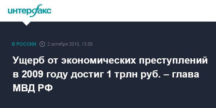 Ущерб от экономических преступлений в 2009 году достиг 1 трлн руб. – глава МВД РФ