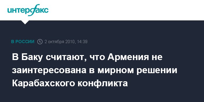 В Баку считают, что Армения не заинтересована в мирном решении Карабахского конфликта