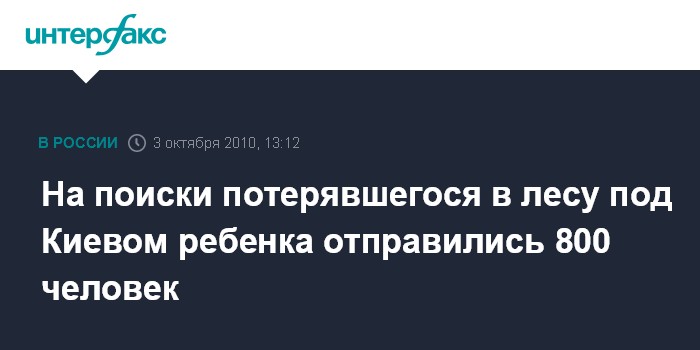 Киев. 3 октября. INTERFAX.RU - Потерявшегося пятилетнего ребенка искали в лесу на окраине Киева около 800 человек, сообщила в воскресенье пресс-служба МинЧС Украины. Сообщение о пропаже ребенка, отдыхавшего с семьей в лесу, поступило в субботу днем. К поисково-спасательным работам были привлечены подразделения МЧС, МВД, кинологические службы, работники лесопаркового хозяйства и местное население (всего 780 человек и 38 единиц техники).