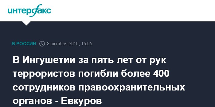В Ингушетии за пять лет от рук террористов погибли более 400 сотрудников правоохранительных органов - Евкуров
