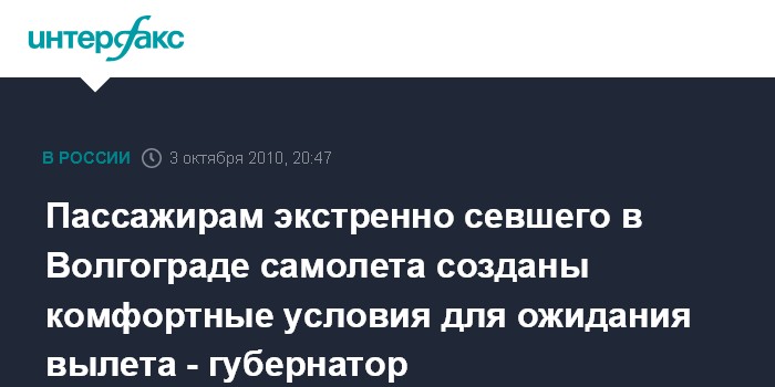 Пассажирам экстренно севшего в Волгограде самолета созданы комфортные условия для ожидания вылета - губернатор