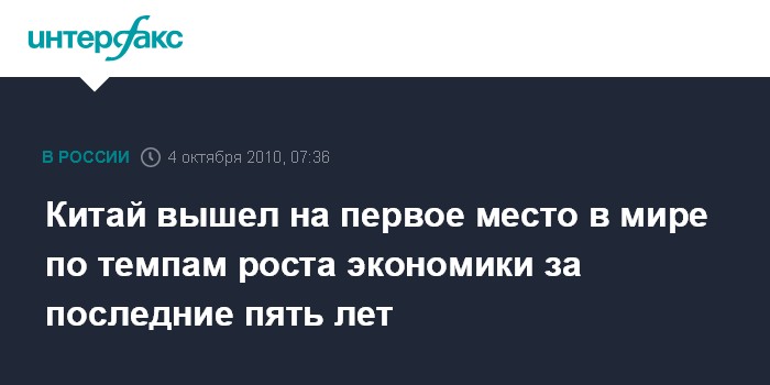 "Хотя 2010 год еще не закончился, уже очевидно, что в 11-й пятилетке экономика Китая совершила скачок. В 2006-2009 годах, то есть за четыре года пятилетки, среднегодовой рост ВВП составил 11,4%, это на 1,6 процентных пункта превосходит результат десятой пятилетки, когда темпы экономического роста достигли 9,8%", - говорится в статье.
