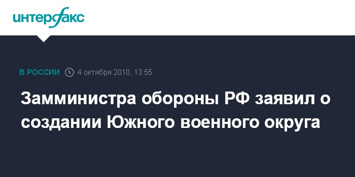 Замминистра обороны РФ заявил о создании Южного военного округа