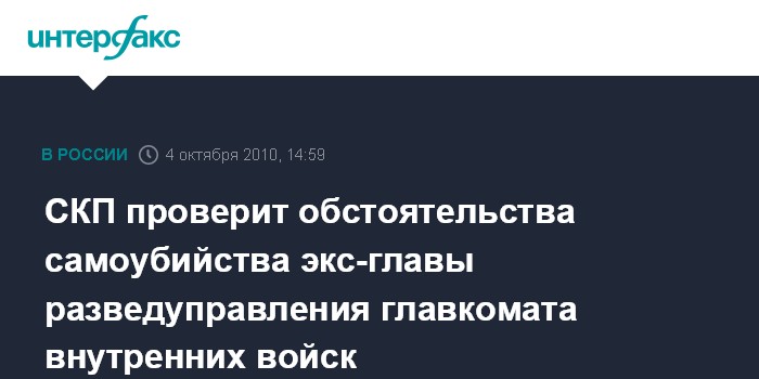 СКП проверит обстоятельства самоубийства экс-главы разведуправления главкомата внутренних войск