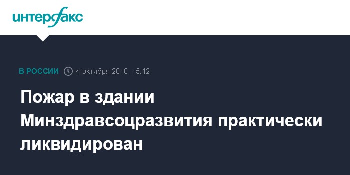 Москва. 4 октября. INTEERFAX.RU - Пожар в здании Минздравсоцразвития РФ на Ильинке потушен, пострадавших нет, сообщила "Интерфаксу" пресс-секретарь министерства София Малявина.