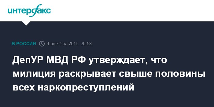 ДепУР МВД РФ утверждает, что милиция раскрывает свыше половины всех наркопреступлений