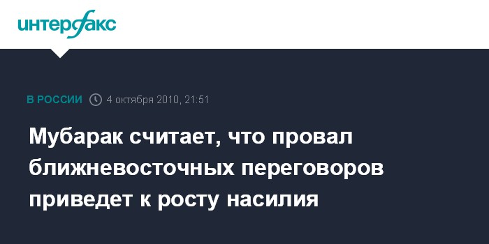 "В случае провала палестино-израильского диалога возрастет количество волнений и терактов", - цитирует ЭФЭ заявление Мубарака.