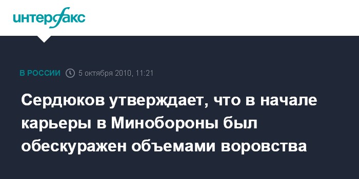 "Когда я пришел в Минобороны, то, откровенно говоря, был обескуражен объемами воровства. Это ощущение не прошло до сих пор. Финансовая распущенность, безнаказанность людей, которых никто никогда не проверял", - сказал Сердюков в интервью журналу Newsweek.