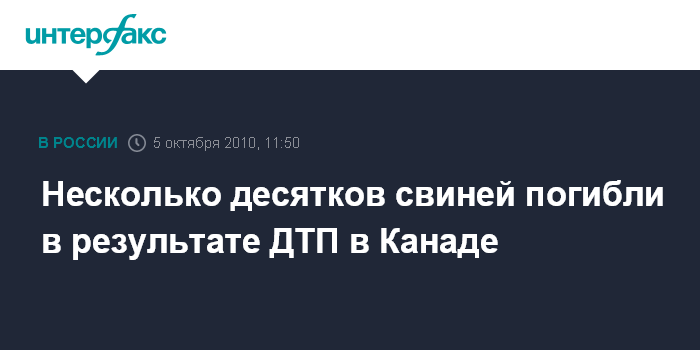Канада. 5 октября. INTERFAX.RU - Минимум 81 свинья погибла из-за того, что грузовик, перевозивший животных на скотобойню, перевернулся на автодороге в районе канадского города Торонто, сообщают местные СМИ.