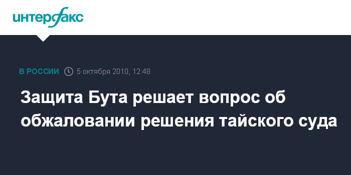 Защита Бута решает вопрос об обжаловании решения тайского суда
