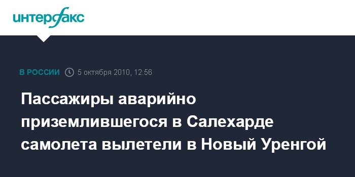 Екатеринбург. 5 октября. INTERFAX.RU - Все пассажиры самолета ТУ-134 ОАО "Авиакомпания Ямал", совершившего во вторник вынужденную посадку в Салехарде, благополучно вылетели на другом воздушном судне в место назначения, сообщил "Интерфаксу" гендиректор авиакомпании Василий Крюк.