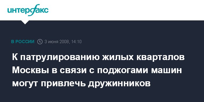 К патрулированию жилых кварталов Москвы в связи с поджогами машин могут привлечь дружинников
