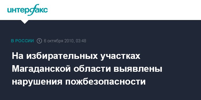 Магадан. 6 октября. ИНТЕРФАКС-ДАЛЬНИЙ ВОСТОК - Инспекторы Государственного пожарного надзора в Магаданской области совместно с сотрудниками прокуратуры проверяют избирательные участки региона на предмет их пожарной безопасности.