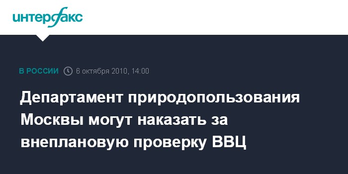 6 октября. INTERFAX.RU - Природоохранная прокуратура потребовала от руководства столичного департамента природопользования наказать сотрудников, виновных в проведении внеплановой проверки хозяйственного управления Всероссийского выставочного центра.