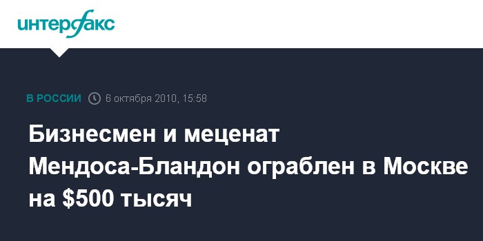 Бизнесмен и меценат Мендоса-Бландон ограблен в Москве на $500 тысяч