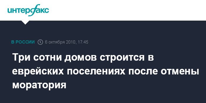 Иерусалим. 6 октября. INTERFAX.RU - Через 10 дней после отмены моратория в еврейских поселениях на Западном берегу реки Иордан идет активное строительство 350 новых жилищ, сообщает в среду израильская газета "Гаарец".