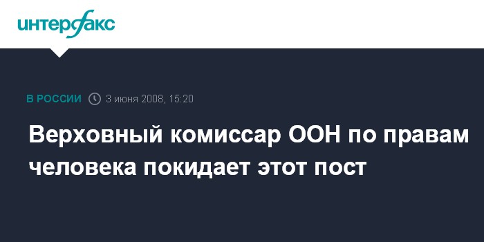 Москва. 3 июня. INTERFAX.RU - Луиза Арбур покидает пост Верховного комиссара ООН по правам человека. Она завершит свой четырехлетний срок полномочий. Она решила не баллотироваться на повторный срок, сообщает служба новостей ООН.