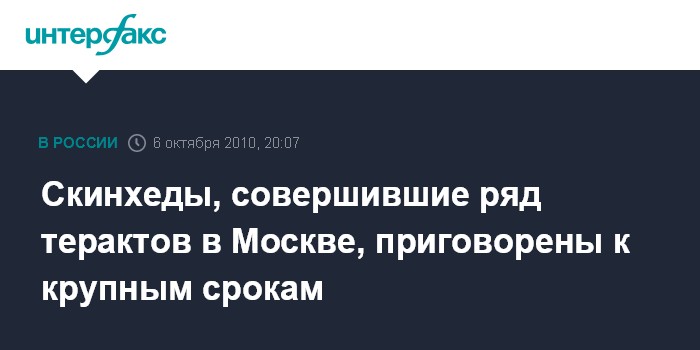 Скинхеды, совершившие ряд терактов в Москве, приговорены к крупным срокам