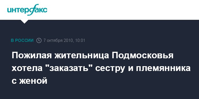 Пожилая жительница Подмосковья хотела "заказать" сестру и племянника с женой