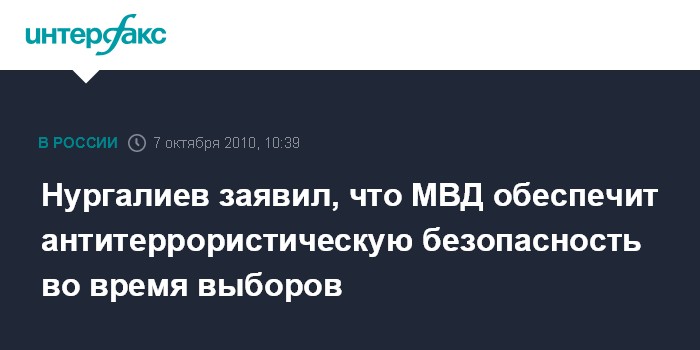 Москва. 7 октября. INTERFAX.RU - МВД РФ принимает дополнительные меры антитеррористической безопасности в связи с проведением Единого дня голосования 10 октября, заявил глава ведомства Рашид Нургалиев.