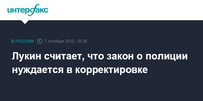 Москва. 7 октября. INTERFAX.RU - Уполномоченный по правам человека в РФ Владимир Лукин рассчитывает на политические решения по изменению положений законопроекта "О полиции", которые вызвали общественную критику.