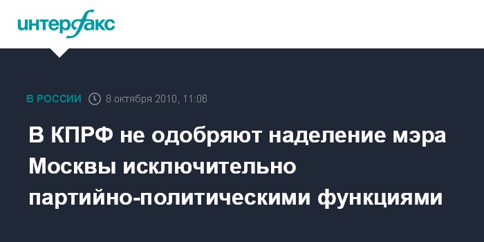 Москва. 8 октября. INTERFAX.RU - В руководстве КПРФ выступают против возможного наделения мэра Москвы партийно-политическими функциями в ущерб хозяйственным.
