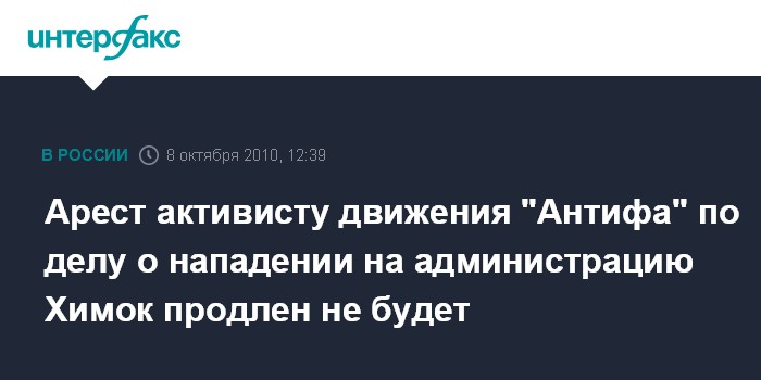 Арест активисту движения "Антифа" по делу о нападении на администрацию Химок продлен не будет