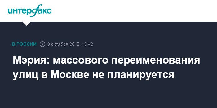 Мэрия: массового переименования улиц в Москве не планируется