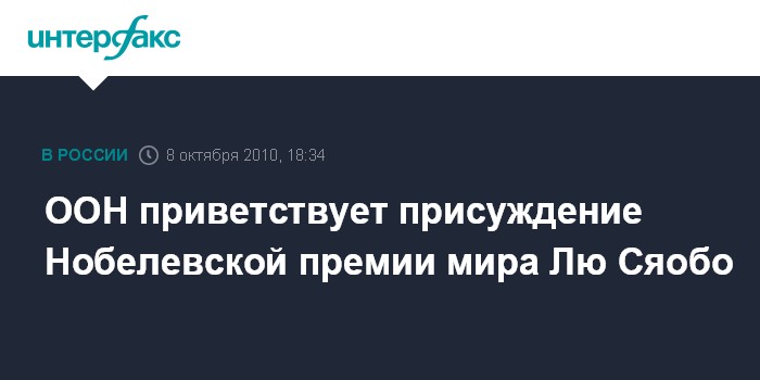 ООН приветствует присуждение Нобелевской премии мира Лю Сяобо