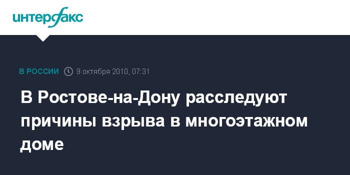Ростов-на-Дону. 9 октября. ИНТЕРФАКС - Взрыв прогремел минувшей ночью в девятиэтажном доме в Ростове-на-Дону, пострадавших нет.