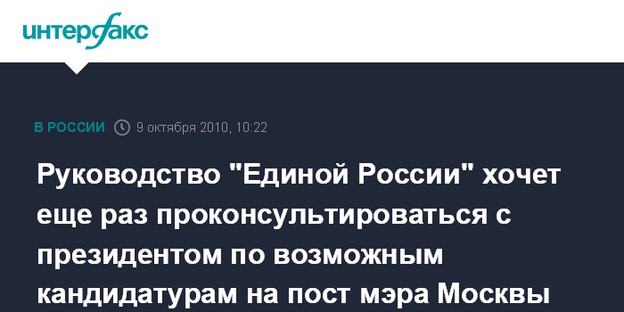 Руководство "Единой России" хочет еще раз проконсультироваться с президентом по возможным кандидатурам на пост мэра Москвы