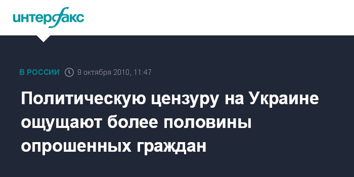 Киев. 9 октября. INTERFAX.RU - Более половины жителей Украины считают, что в стране существует политическая цензура. При этом уровень свободы слова украинцы оценивают в среднем на "тройку", свидетельствуют результаты всеукраинского опроса, проведенного социологической службой Центра Разумкова в начале октября.