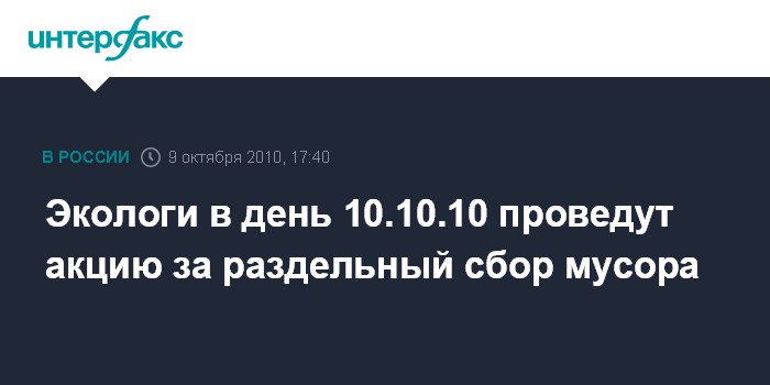 Экологи в день 10.10.10 проведут акцию за раздельный сбор мусора