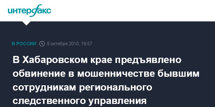 Москва. 9 октября. ИНТЕРФАКС - Следственным управлением Следственного комитета по Дальневосточному федеральному округу предъявлено обвинение в мошенничестве бывшим сотрудникам следственного управления по Хабаровскому краю, сообщает официальный сайт СКП РФ в субботу.