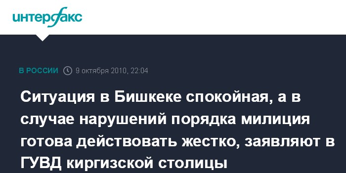 Бишкек. 9 октября. ИНТЕРФАКС - Милиция столицы Киргизии готова жестко пресекать любые провокации и беспорядки в день голосования на парламентских выборах, заявили "Интерфаксу" в субботу в пресс-службе Главного управления внутренних дел Бишкека.
