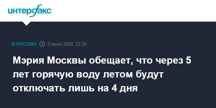 Мэрия Москвы обещает, что через 5 лет горячую воду летом будут отключать лишь на 4 дня