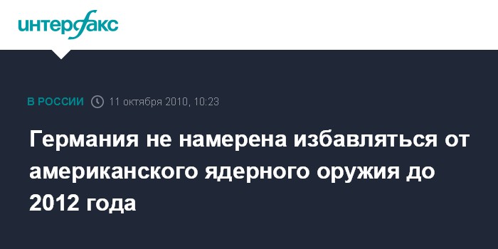 Москва. 11 октября. INTERFAX.RU - Посол ФРГ в Москве Ульрих Бранденбург опровергает появившуюся в СМИ информацию о том, что Германия намерена избавиться от американского тактического ядерного оружия, расположенного на ее территории, до 2012 года.