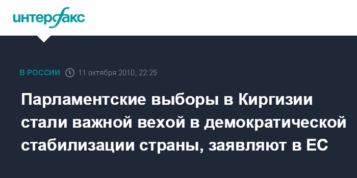 Брюссель. 11 октября. ИНТЕРФАКС - Верховный представитель ЕС по внешней политике и политике безопасности Кэтрин Эштон приветствовала в понедельник мирный исход парламентских выборов в Киргизии.