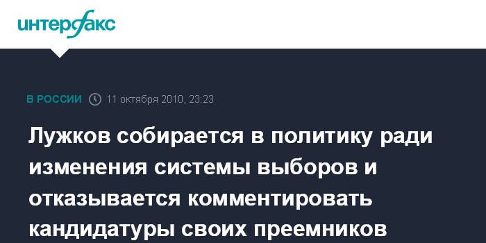 Лужков собирается в политику ради изменения системы выборов и отказывается комментировать кандидатуры своих преемников