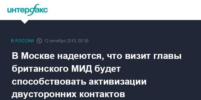 "С удовлетворением констатируем, что в последнее время активизировались двусторонние политические контакты высокого уровня. Надеемся, что предстоящий визит Уильяма Хейга позволит закрепить эти тенденции. И хотя британская сторона, судя по всему, пока не готова к конкретным шагам по снятию известных ограничителей в сотрудничестве России и Великобритании, обе стороны, тем не менее, едины в понимании того, что сохраняющиеся проблемы в двусторонних отношениях не должны препятствовать развитию взаимодействия по тем направлениям, где это представляется возможным", - говорится в сообщении А.Нестеренко на сайте МИД.