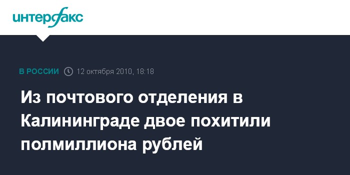 Из почтового отделения в Калининграде двое похитили полмиллиона рублей